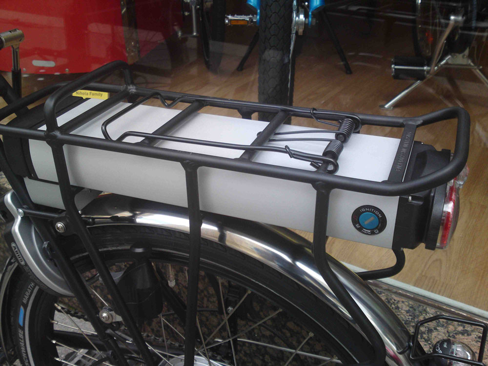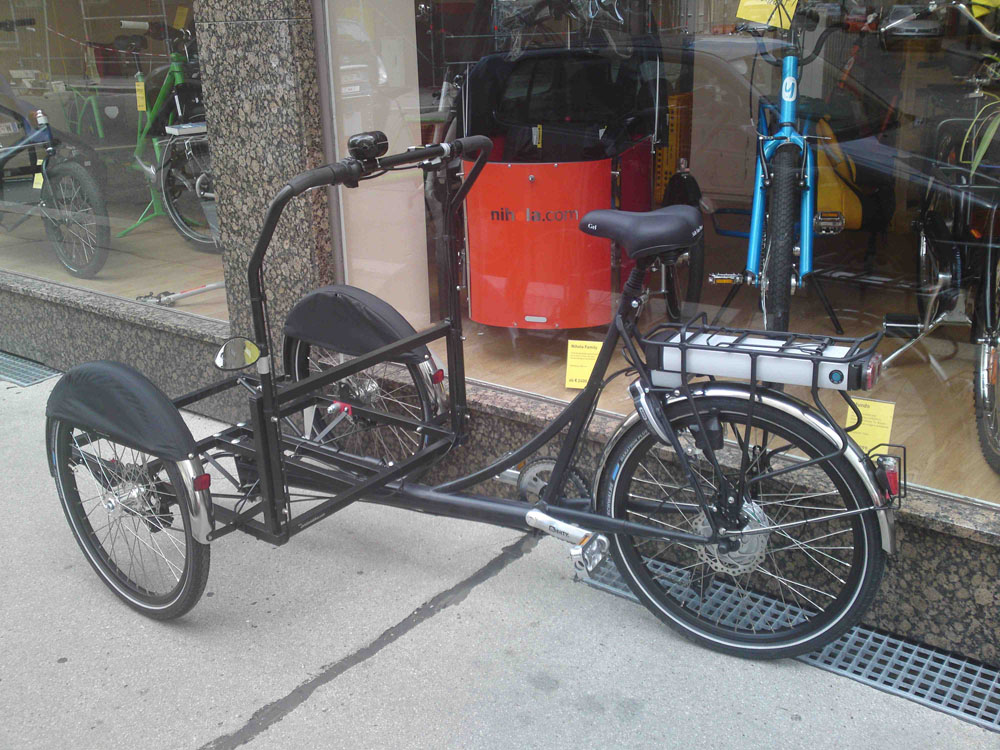 So bietet z.B. Christiania Bikes aus Dänemark, ab Werk, einige ihrer Modelle optional mit E-Motor (250 Watt, Li-Ionen-Akku) an. Nachfolgend ein paar Detailfotos von einem Christiania Bike, Modell 3107 (ohne Box), mit E-Motor.